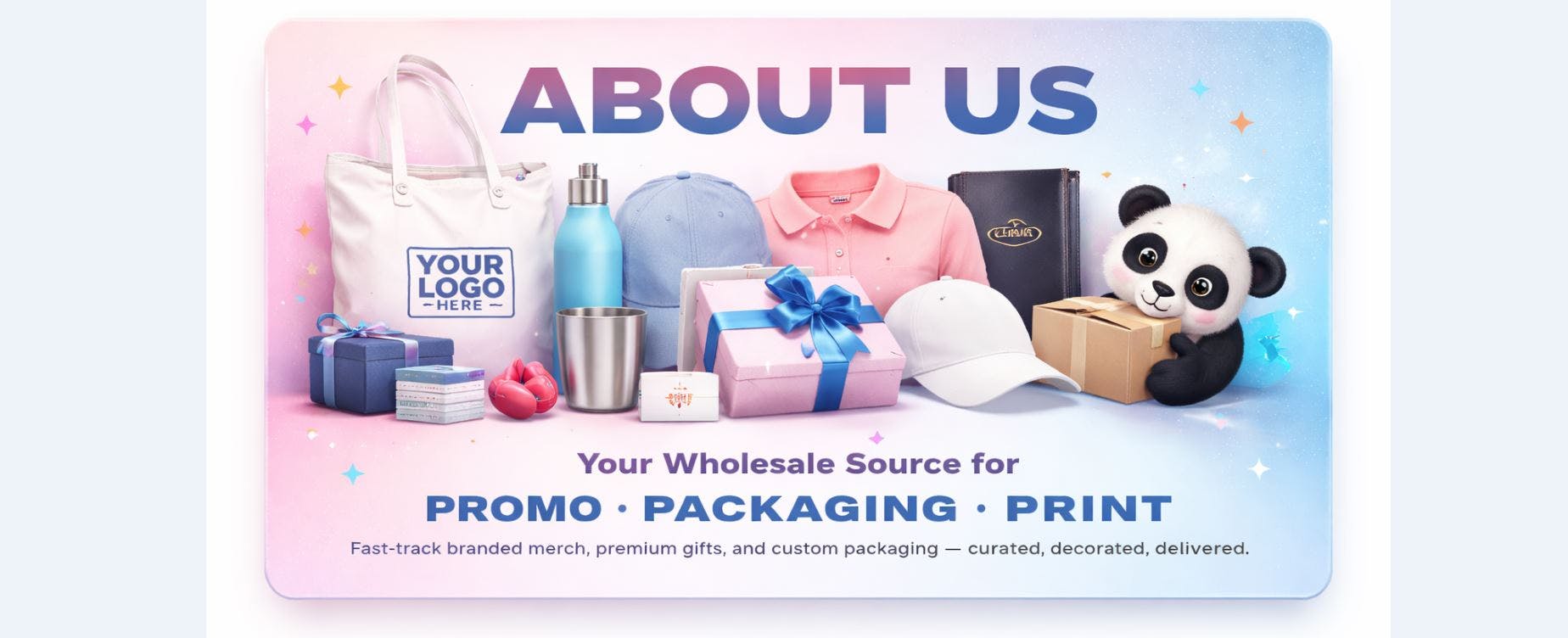 We specialize in helping businesses source and order branded essentials and luxury buys they can give away or resell — from everyday promo like apparel, drinkware, and event giveaways to high-impact packaging, premium gifts, and custom print materials. Our platform is built for fast buying: curated wholesale pricing, decoration-ready products, artwork support, and production coordination through trusted U.S. manufacturing networks.